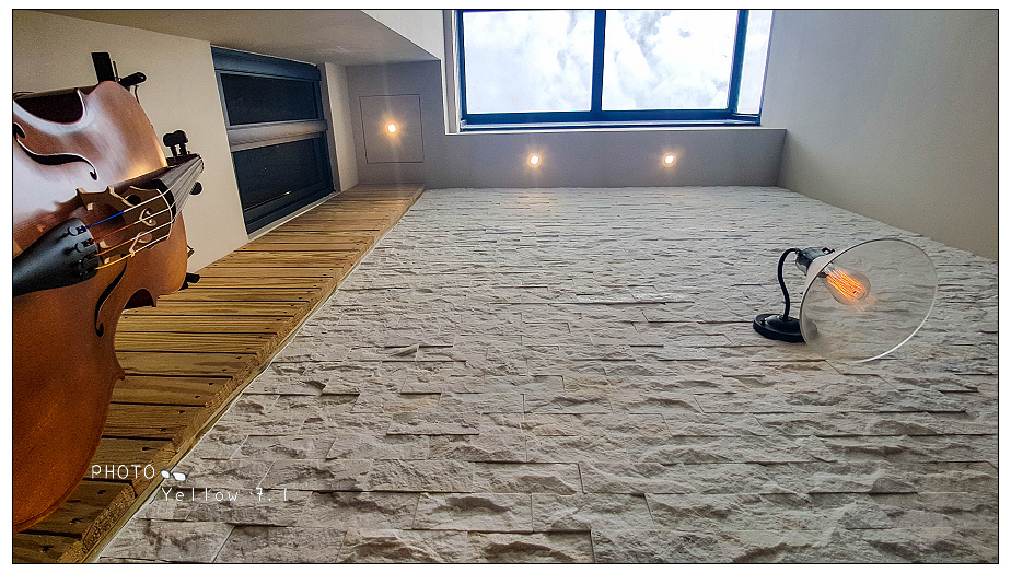 樓梯間的光線從大面的天井順著磚牆緩緩的滑落,從三樓一路延伸到最底,讓大提琴可以靜靜的在這沐浴著陽光,陪伴提琴的,還有書、還有畫、還有咖啡~